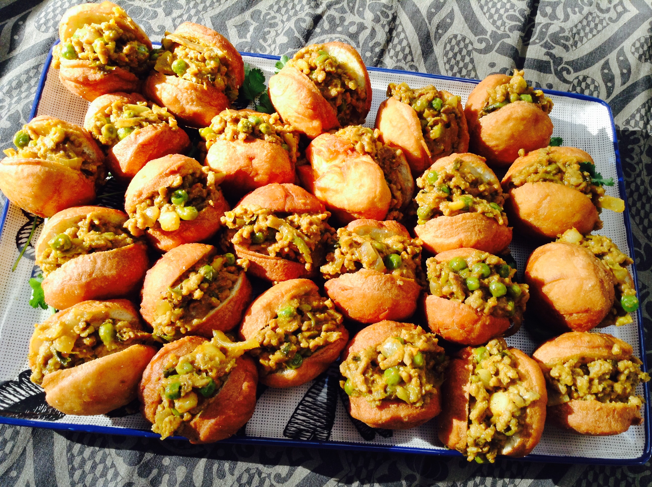 Vetkoek is a typical South African recipe. The traditional way is to eat it with a curry mince but you can have it with chicken mayo or even jam. Normally you would make them palm size but I decided to make mini versions and it was a hit!